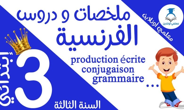 ملخصات و دروس مادة الفرنسية الثالثة ابتدائي