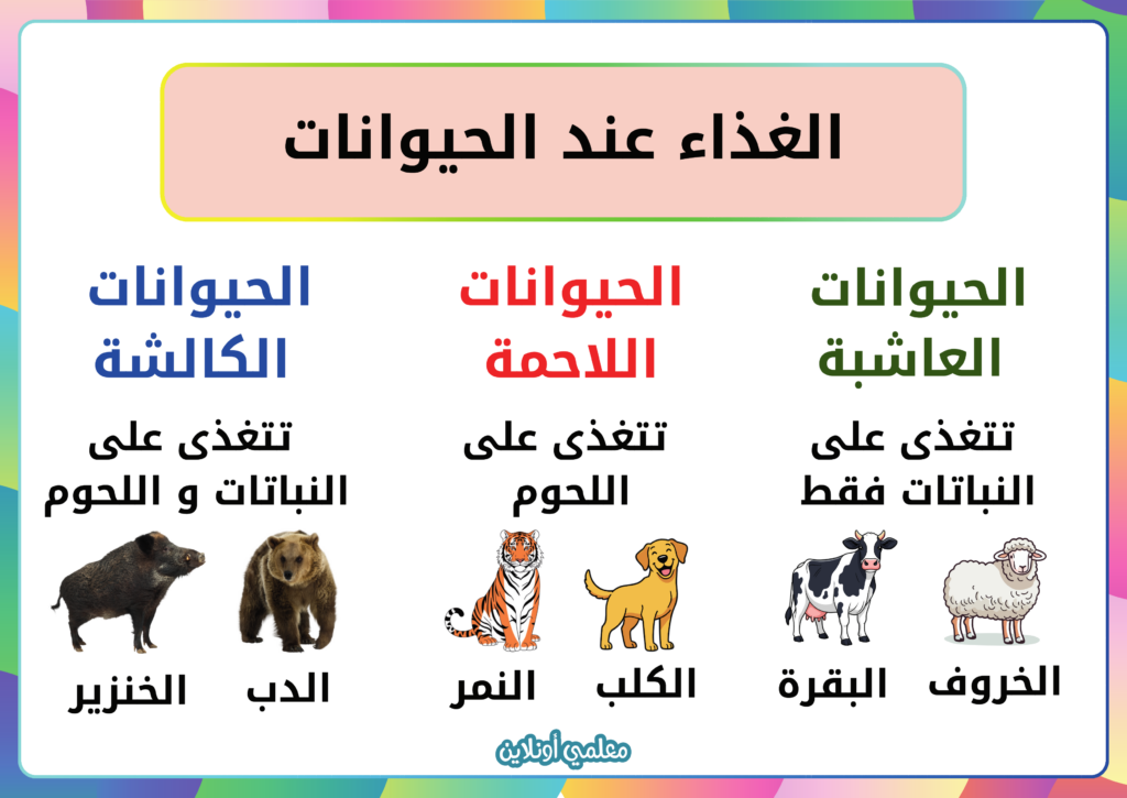 يقدم لكم موقع معلمي أونلاين مجموعة معلقات حول محور التغذية في مادة الإيقاظ العلمي للسنة الثالثة ابتدائي. توضّح هذه المعلقات المفاهيم الأساسية بطريقة بصرية واضحة تساعد على الفهم . تعرض المعلقات مصادر الغذاء عند الإنسان، وتشمل المصدر النباتي والمصدر الحيواني. وتوضح المعلقات أنواع الأغذية وفوائدها، إذ تمدّ الجسم بالطاقة، وتساعد على النمو وبناء الجسم، وتحافظ على الصحة. وتتناول أيضًا الغذاء عند الحيوانات من خلال تصنيفها إلى حيوانات عاشبة ولاحمة وكالشة، مع أمثلة مصورة تسهل الفهم. المعلقات متوفرة في ملف PDF جودة عالية.