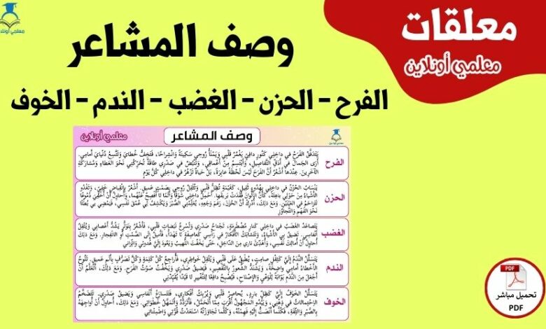 معلقة في وصف المشاعر بأسلوبٍ ثريٍّ وجميل – PDF جاهزة للطباعة