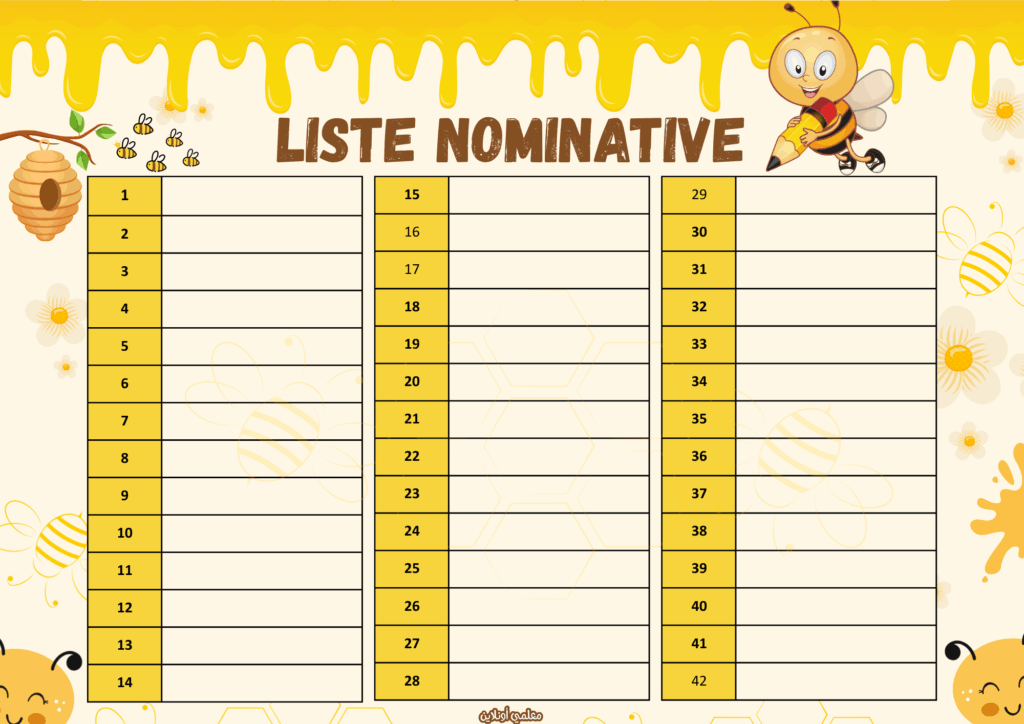 - liste nominative لتوضيح أسماء التلاميذ وتنظيم الحضور.