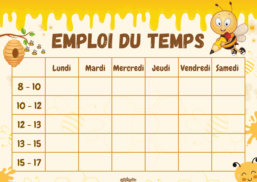 - emploi de temps لتنظيم الحصص الأسبوعية بوضوح.